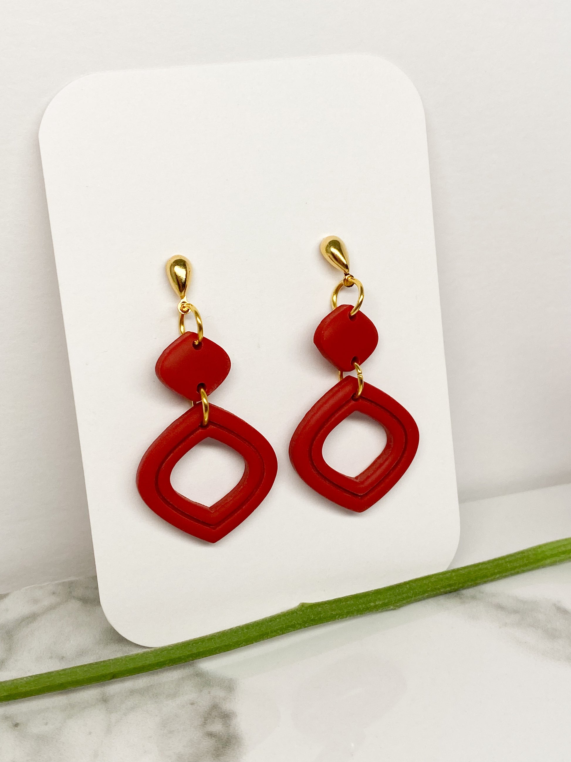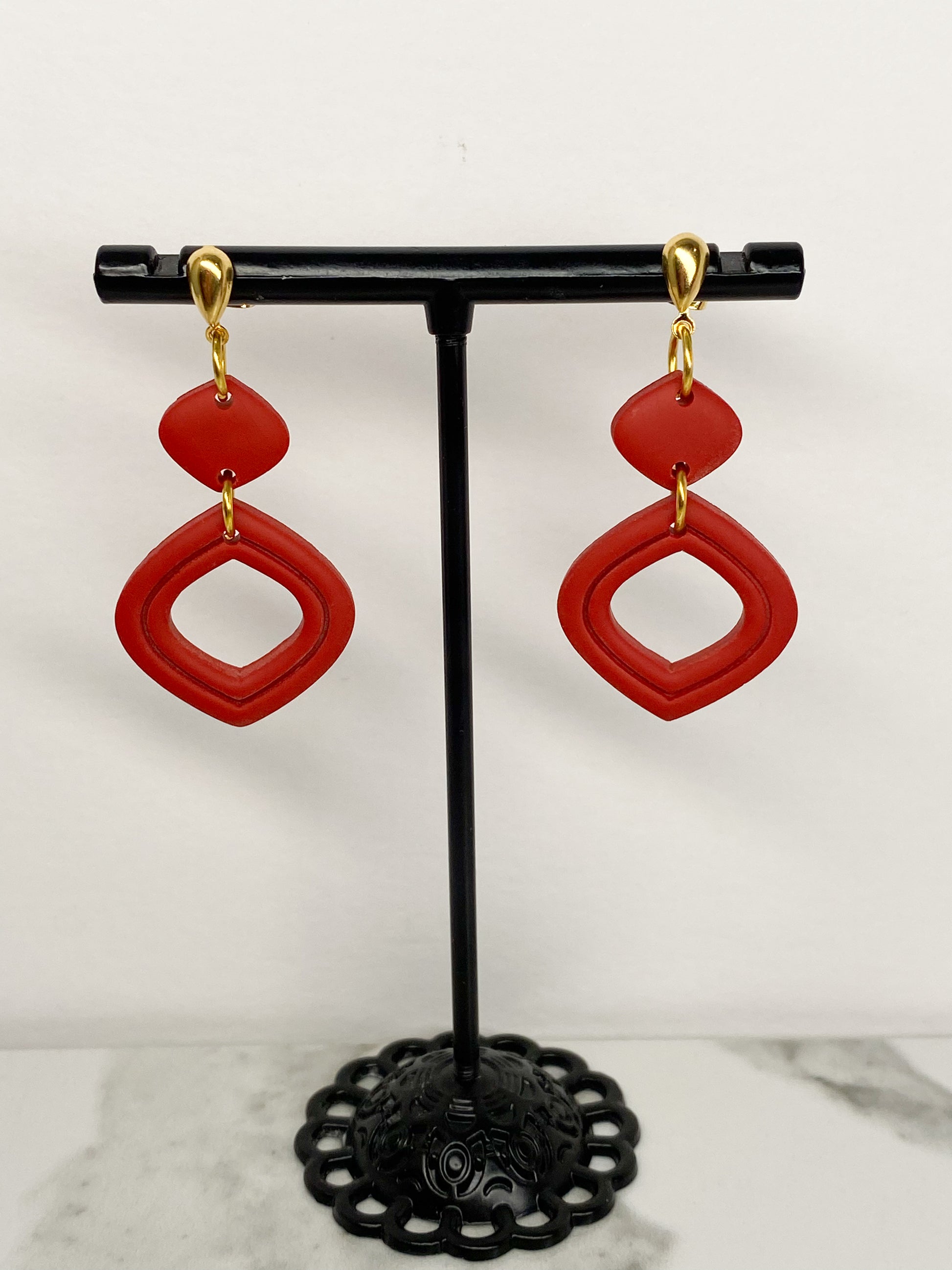 Polymer clay. Findings and jump rings are gold-plated stainless steel and gold-plated brass.