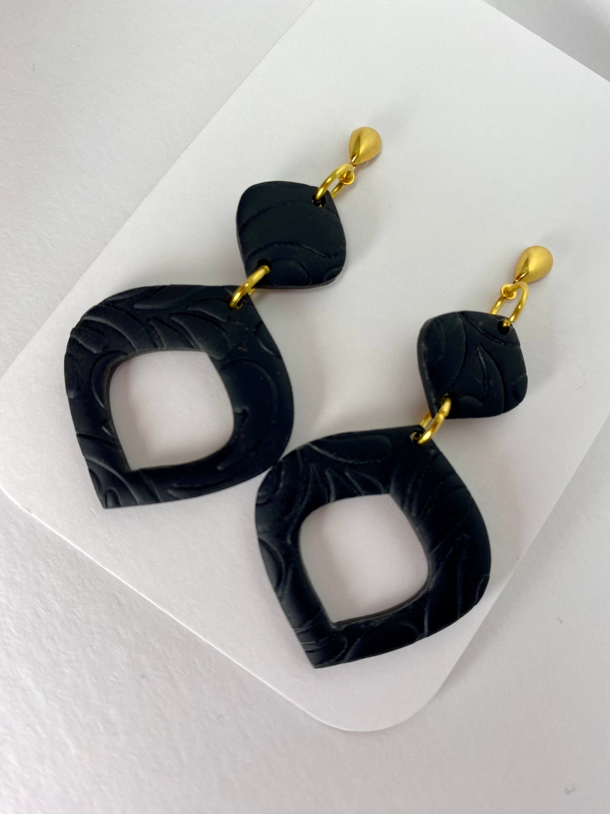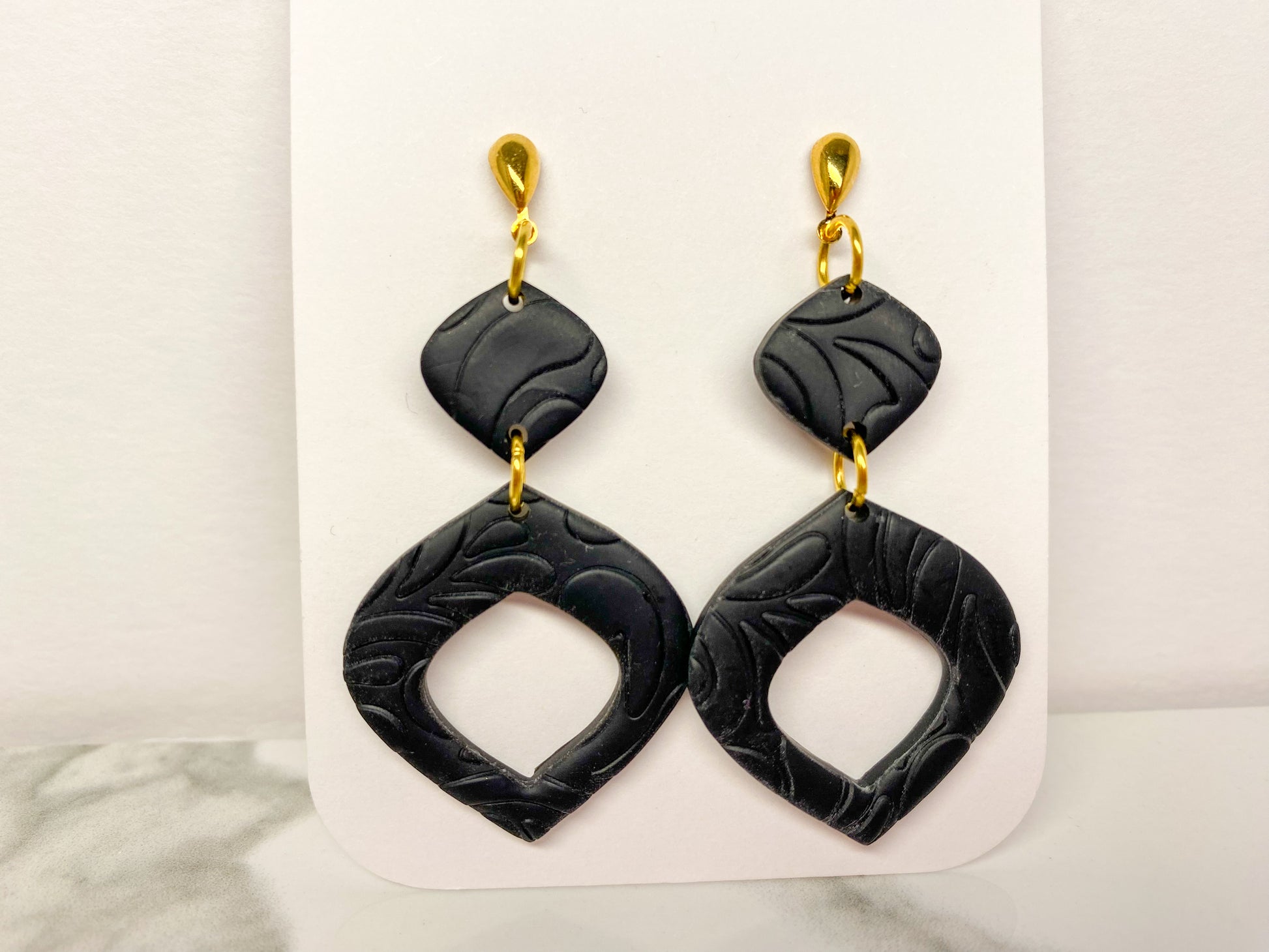 Polymer clay with gold plated brass, and stainless steel findings, and jump rings.